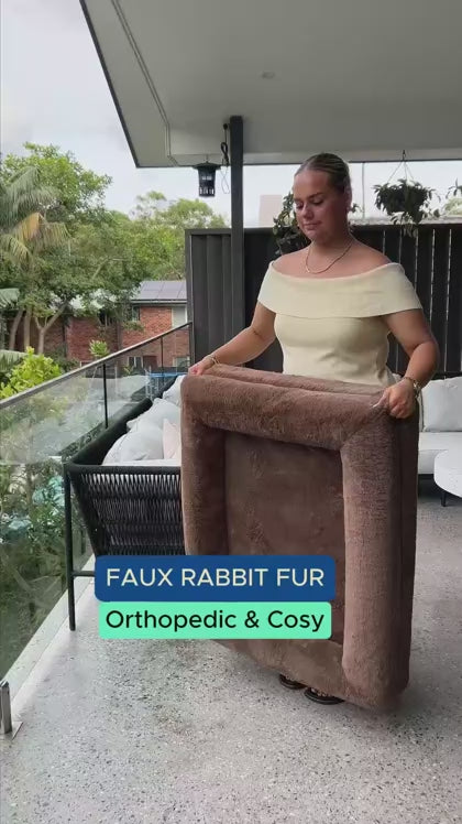 The faux fur bed combines our award-winning Orthopaedic base with a luxuriously soft, rabbit-fur-inspired cover for unmatched warmth and comfort.